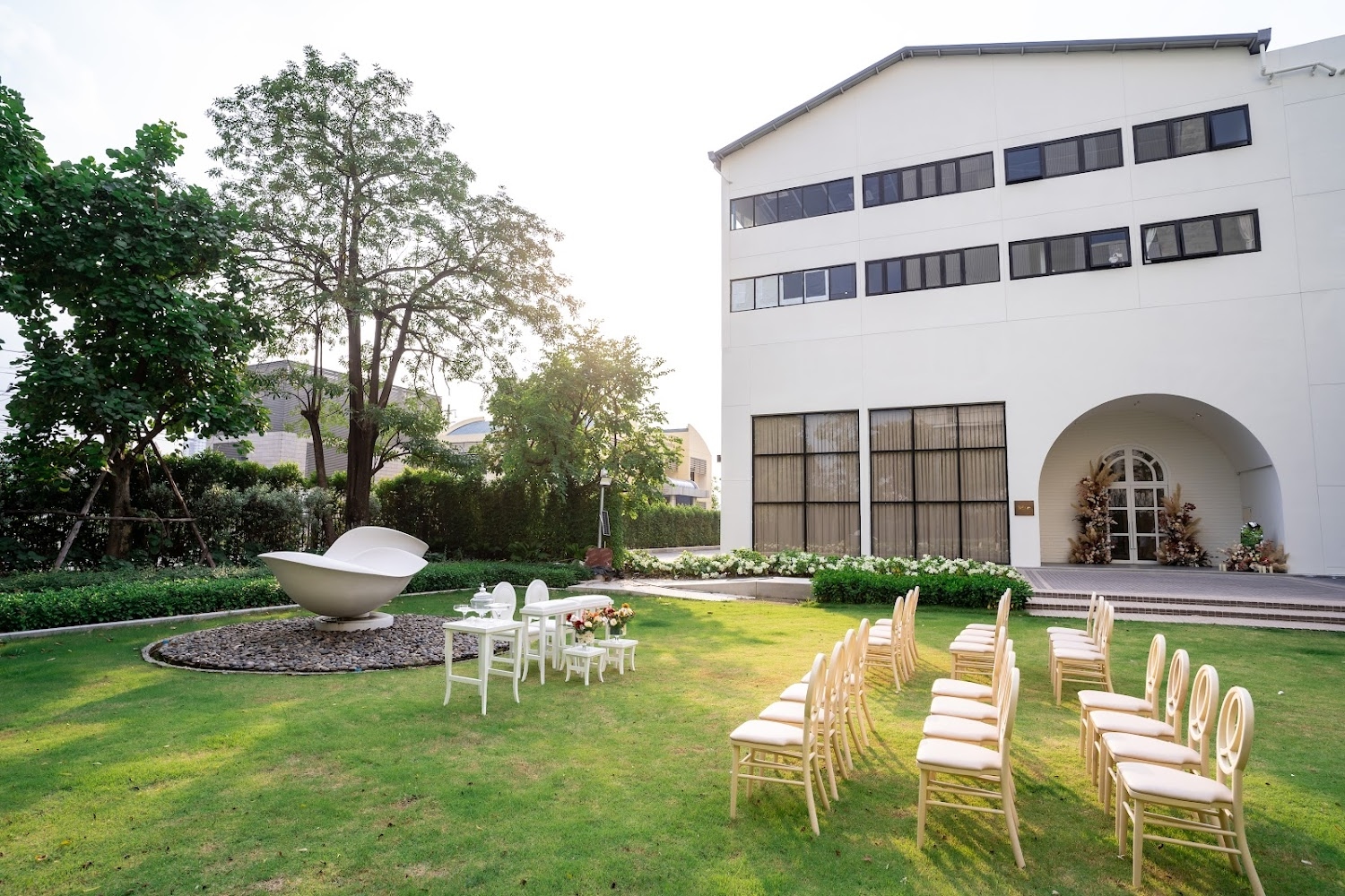 The venue offers private parking facilities that can accommodate up to 300 guests, eliminating the common concern of limited parking that plagues many Bangkok wedding venues.