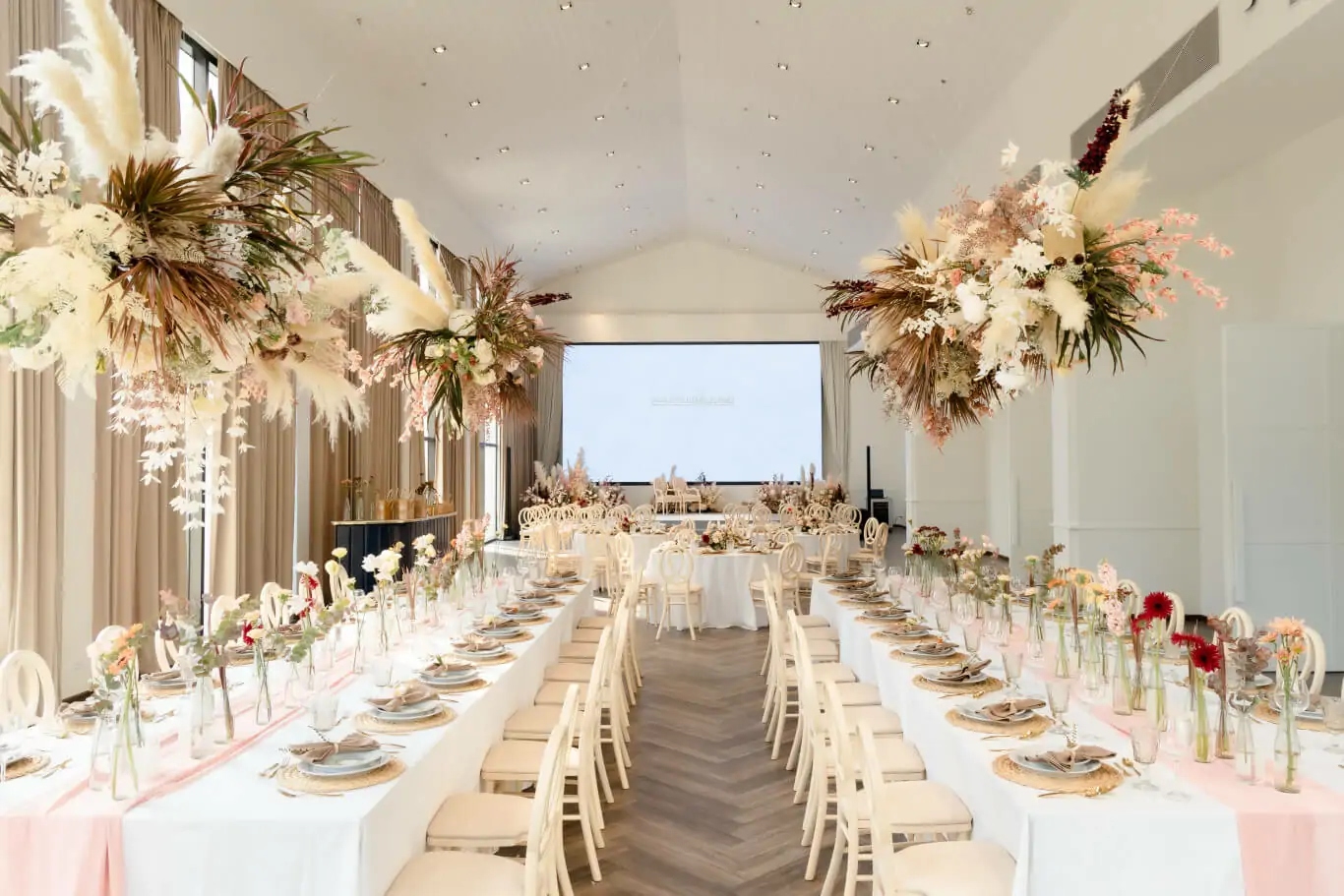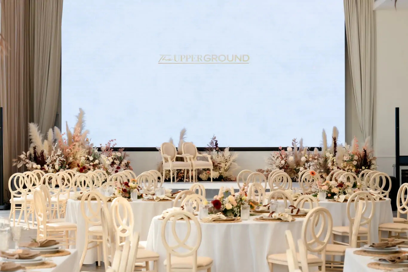 The venue’s technical infrastructure supports modern wedding expectations with professional lighting, sound systems, and projection capabilities that enhance both ceremony and reception elements. The dedicated stage area proves invaluable for wedding ceremonies, speeches, and entertainment, while the TV screens and projector systems enable couples to share photo montages, live ceremony feeds for distant guests, or other multimedia elements that personalize their celebration.