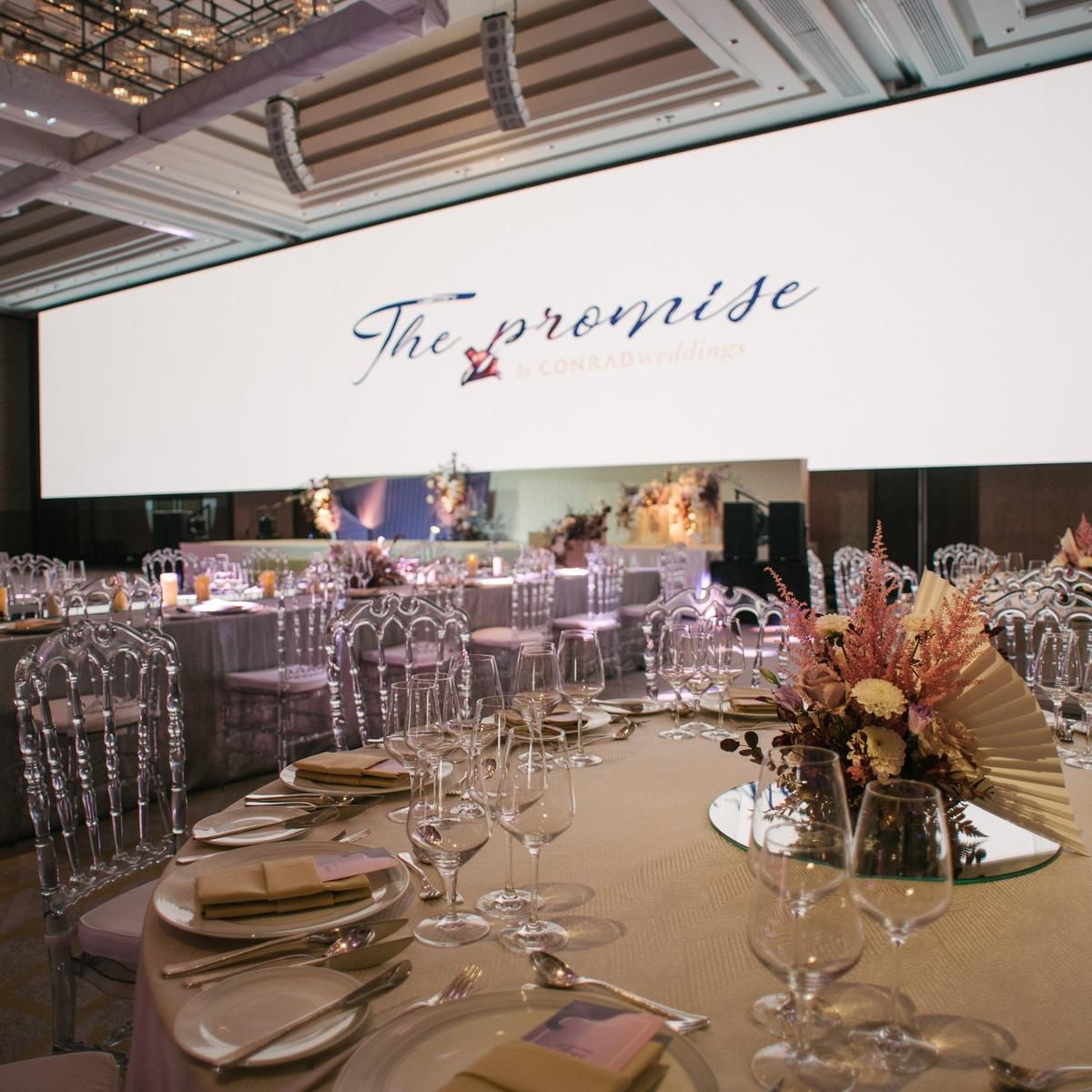 Conrad Bangkok’s versatile venues have earned glowing reviews from guests who’ve experienced them firsthand. The Grand Ballroom, a pillar-less space spanning 772 square meters, features Thailand’s largest LED screen—perfect for creating personalized wedding backdrops. With capacity for up to 60 tables or 800 cocktail guests, it’s an impressive setting for grand celebrations.