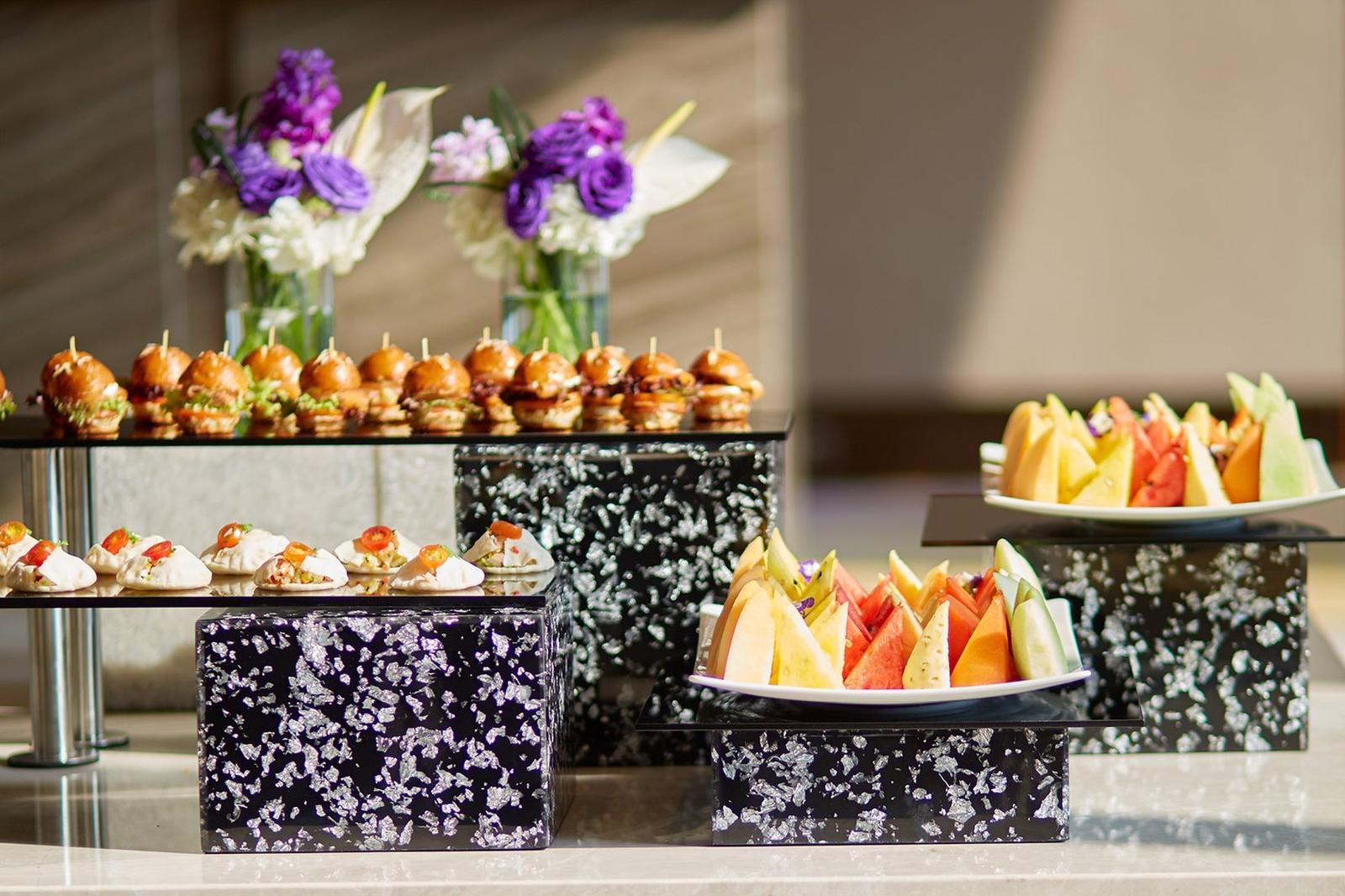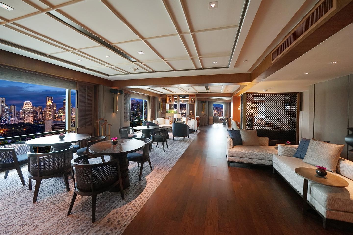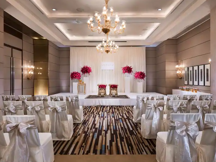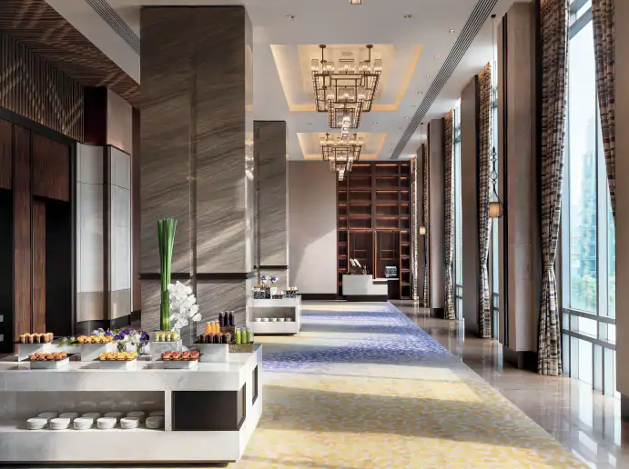 This elegant setting creates the perfect backdrop for wedding dinners in Bangkok, where every detail contributes to a sense of occasion. The hotel’s V-shaped white building stands prominently in the cityscape, while inside, marble finishes and contemporary luxury styling create spaces that feel both grand and intimate—ideal for celebrating life’s most significant moments.
