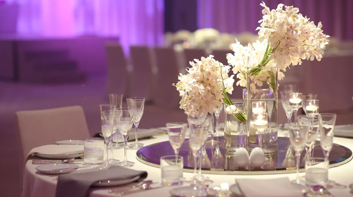This space, accommodating up to 60 guests, creates an intimate setting for romantic wedding ceremonies or engagement parties. For larger celebrations, the Grand Ballroom provides an elegant setting that can be transformed to match any wedding theme.