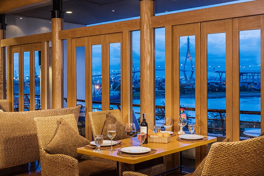 This natural scenic beauty provides an effortless elegance for private group dining experiences or intimate wedding celebrations, with the shimmering waters and Bangkok skyline creating a magical atmosphere as day transitions to evening.