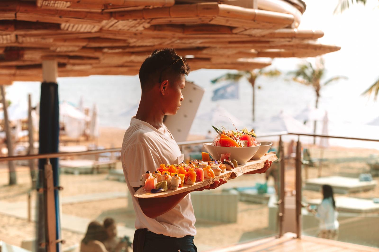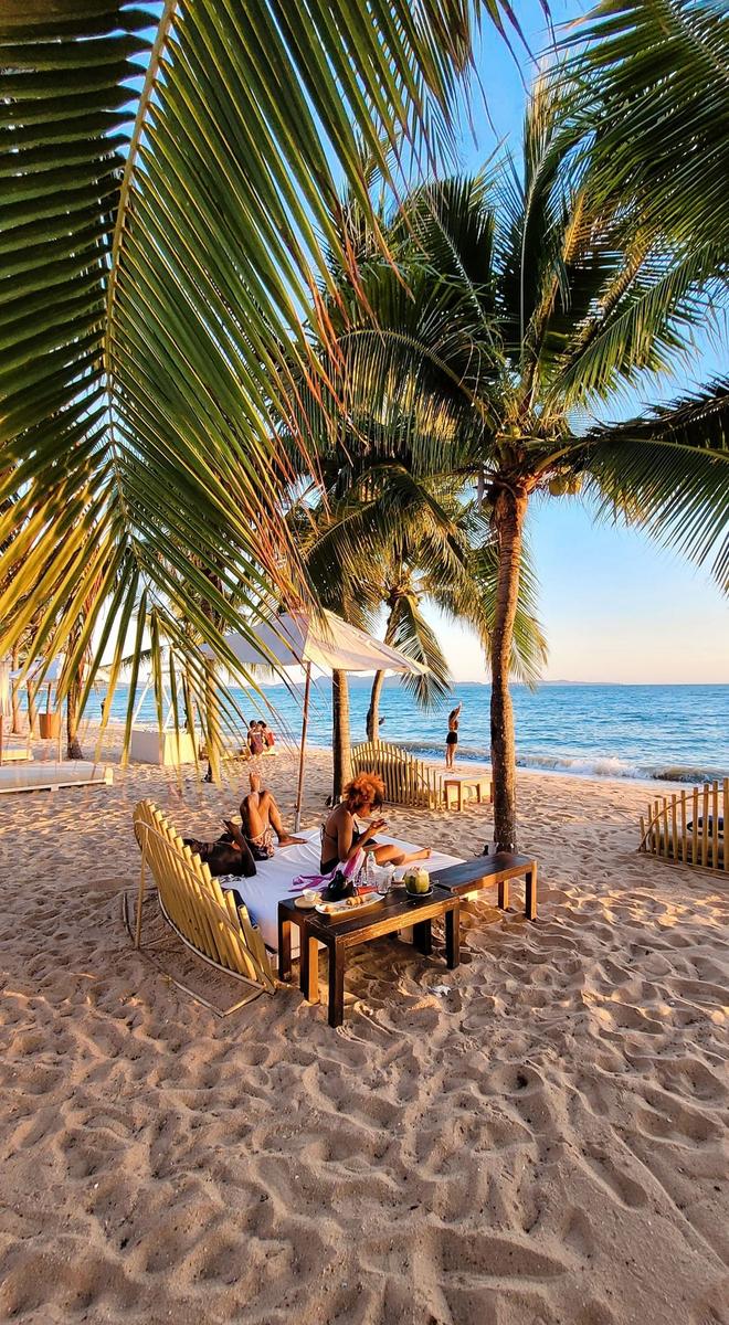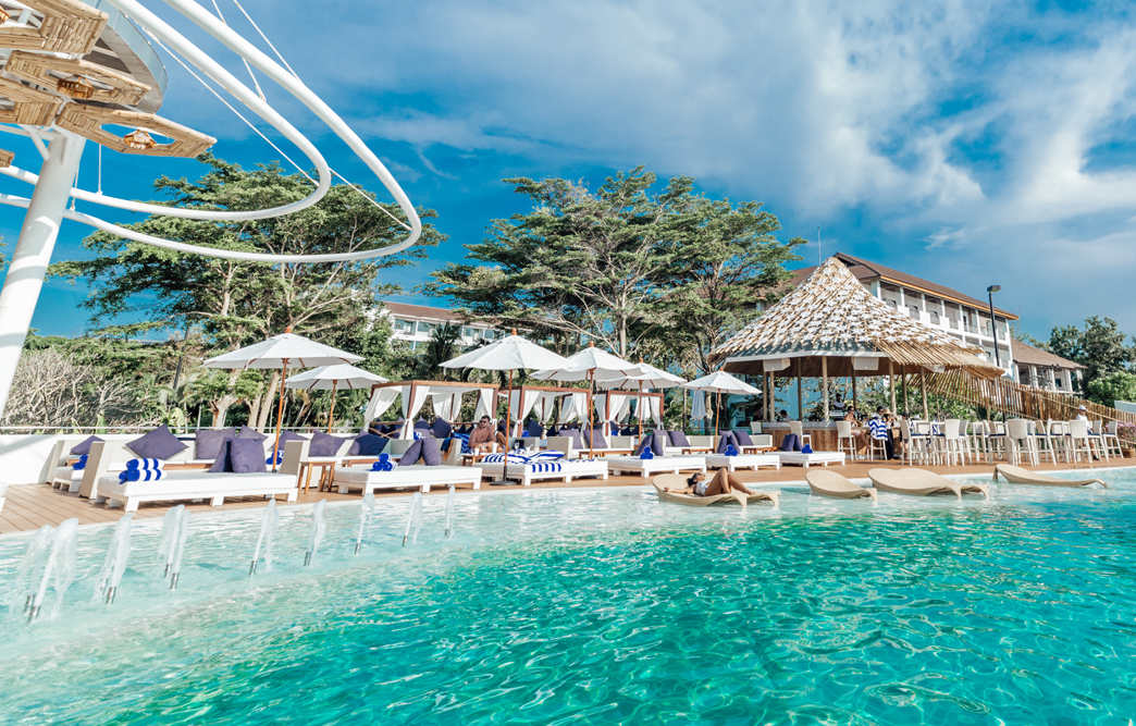 The venue’s design creates what many call an “Ibiza-like atmosphere” in Thailand, featuring an infinity pool that appears to merge with the horizon, private beach access, and stylishly appointed lounging areas that frame spectacular sunset views.