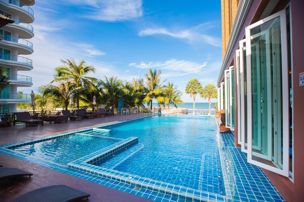 The resort’s beachfront location creates an naturally inspiring atmosphere for wedding celebrations, with the artificial white sand beach area providing a pristine setting for intimate ceremonies while the ocean views offer a stunning backdrop for photography throughout the day. The outdoor pool area becomes a focal point for pre-ceremony gatherings or sunset cocktail hours, allowing couples to take advantage of the coastal setting while maintaining the comfort and convenience of a full-service venue. The property’s design thoughtfully balances indoor and outdoor spaces, giving wedding parties the flexibility to adapt their celebration to weather conditions or guest preferences.