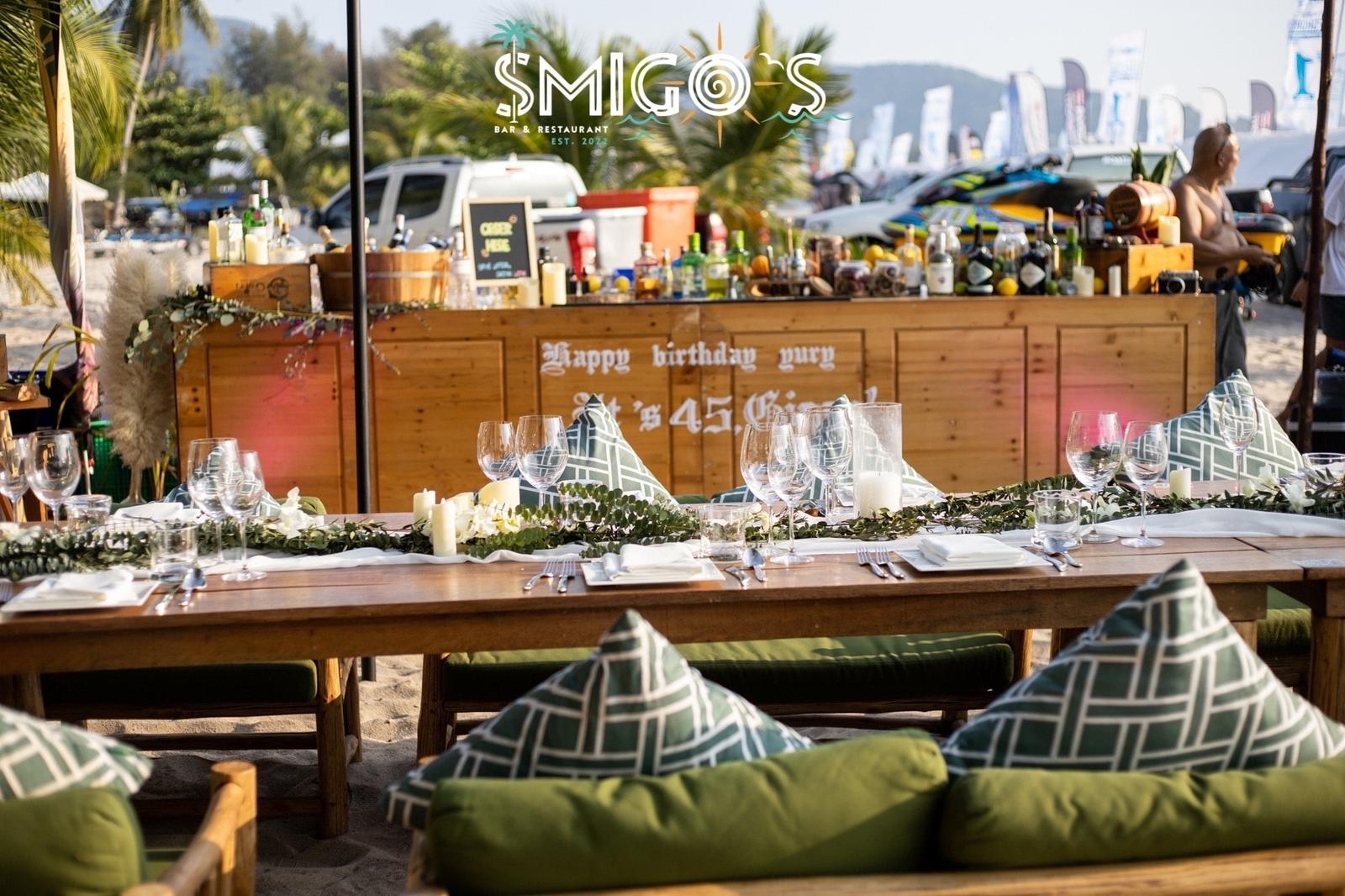 Nestled on Bang Tao Beach in Phuket, Smigo’s Bar & Restaurant offers a magical setting for intimate wedding dinners and celebrations. Guests consistently praise its stunning sunset views, exceptional cuisine, and personalized service that transforms special occasions into unforgettable experiences.