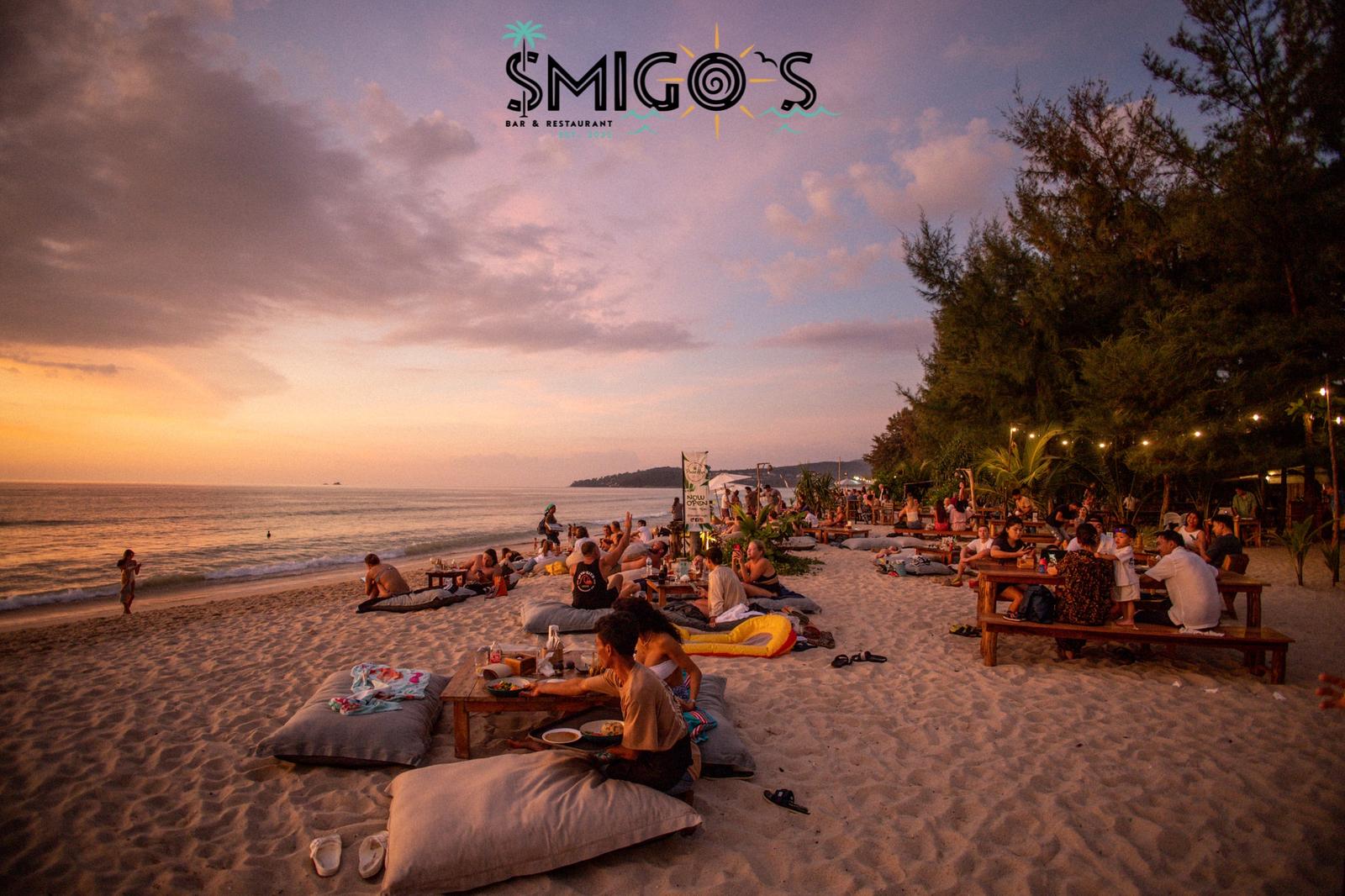 Smigo’s Bar & Restaurant has established itself as a beloved beachfront destination that perfectly balances relaxed tropical charm with exceptional dining experiences. While primarily known as a premier beach bar and restaurant, the venue’s unique ambiance, attentive service, and stunning sunset views make it an increasingly popular choice for intimate wedding dinners, engagement celebrations, and pre-wedding gatherings in Phuket. The venue offers a variety of seating options—from comfortable beanbags directly on the sand to tables nestled under trees that create “an almost enchanted forest vibe” after dark.
