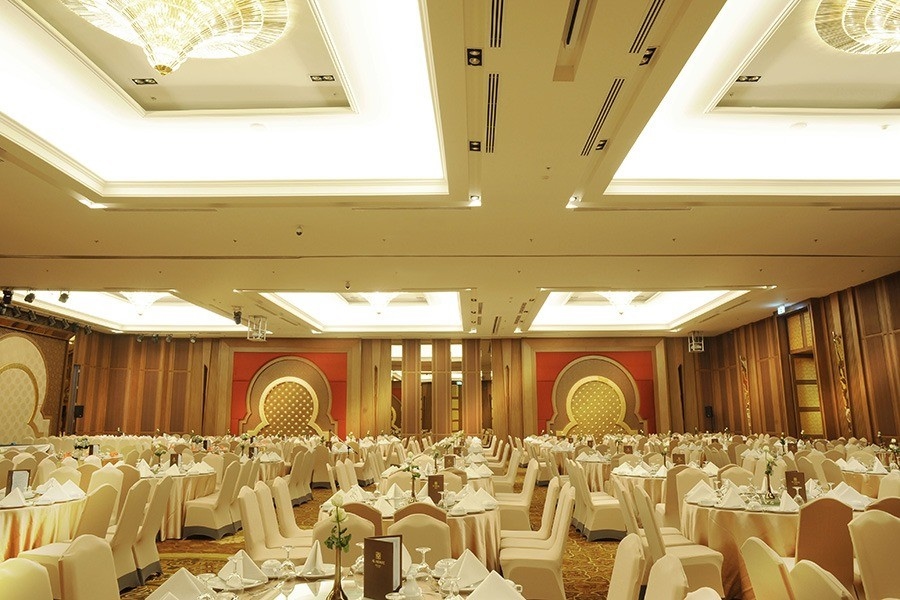 ห้องจัดเลี้ยงขนาดใหญ่พร้อมเวทีมืออาชีพและระบบเสียงภาพที่ทันสมัย รองรับการจัดงานแต่งงานได้ตั้งแต่ 50 คนจนถึง 900 คน เหมาะสำหรับทั้งงานแต่งงานเล็กๆ แบบอบอุ่นและงานแต่งงานใหญ่แบบยิ่งใหญ่